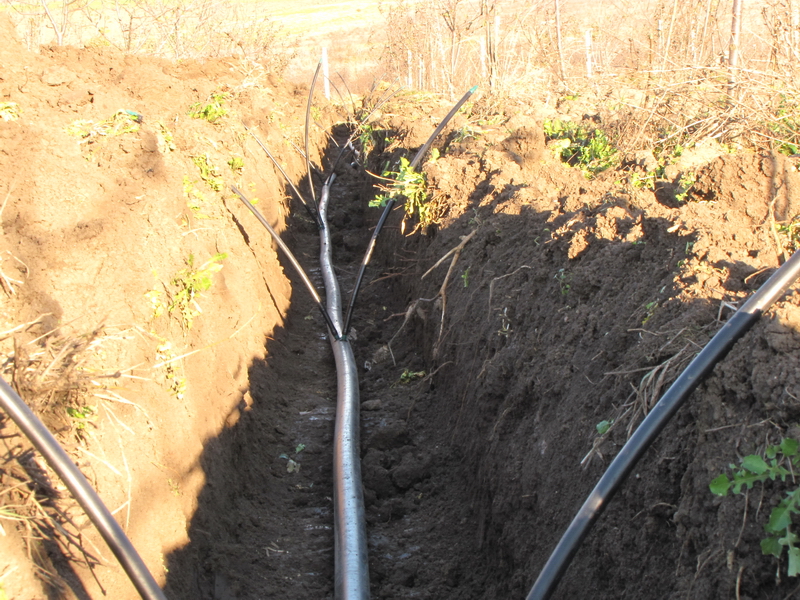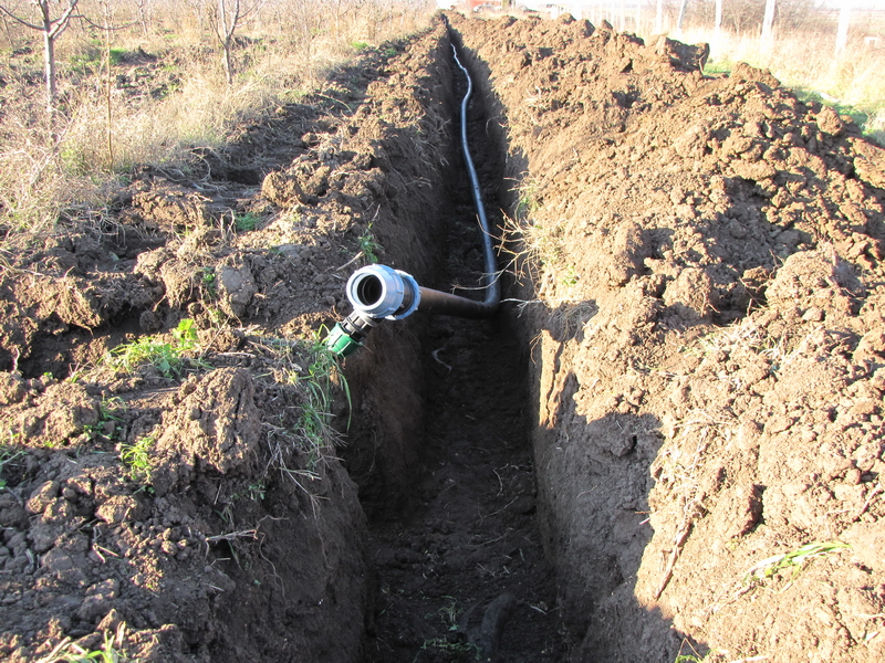 Първи етап от изграждане на автоматизирана поливна система на овощна градина.