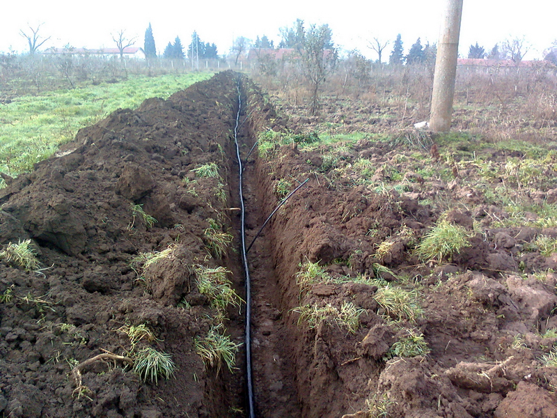 Прокопаване на канали и полагане магистрални тръбопроводи. Използваните тръби са с диаметър ф 75 мм и ф 50 мм за клоновете. Насаждението е от ябълки на площ от 70 дка. За напояване на целия масив са необходими капкови маркучи с обща дължина 15 000 м. На системата е монтиран торосмесителен възел и двуцолов мрежест филтър AMIAD. Проектът и доставката на материалите са от “Аквапро” ООД.