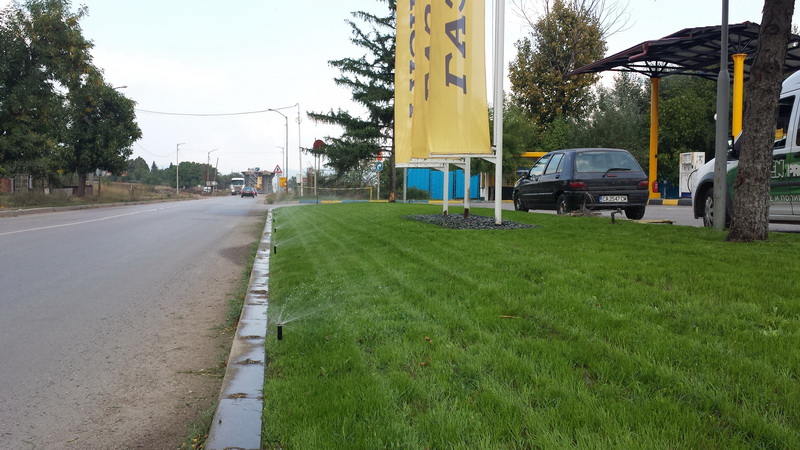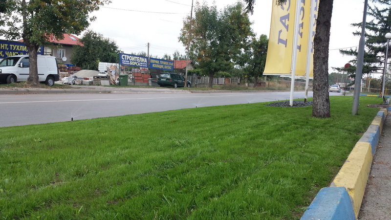 Затревяване на бензиностанция Газпро-М с тревни смески.