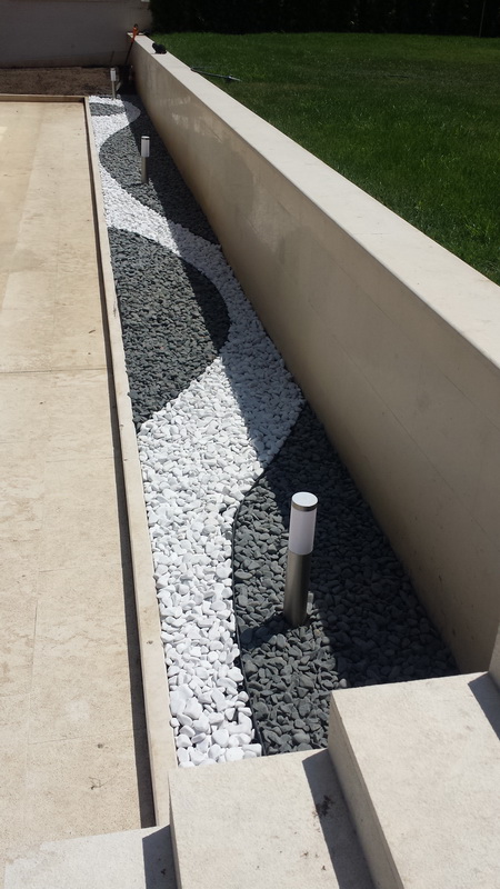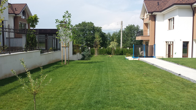 Озеленяване на двор с малко растителност – семпло и изчистено с много открити площи.