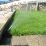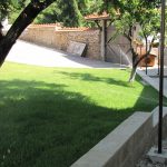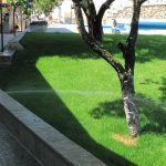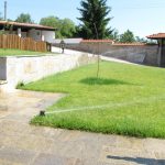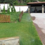 След завършване на строителните дейности по басейна и терасиране на горните нива на терена изградихме останалата част от поливната система. Поливна система с материали на Hunter industries. Използвани са роторни разпръсквачи “SRМ” и “PGP”, както и дефлекторни разпръсквачи тип спрей. Програматорът е “X – Core” с 6 станции за външен монтаж, а електромагнитните клапани “PGV”. Системата се захранва от собствен водоизточник с потопяема помпа “ZDS” с разширителен съд 60 л. и механичен пресостат, пускател Schneider Electric. Предвидено е капково напояване на зеленчуков сектор.