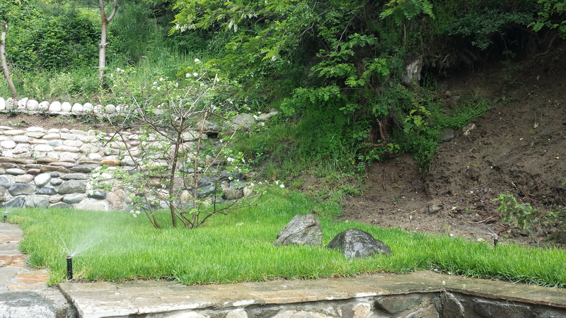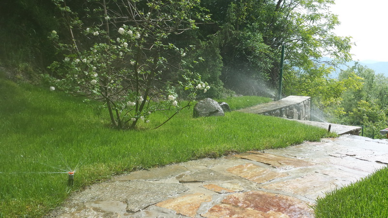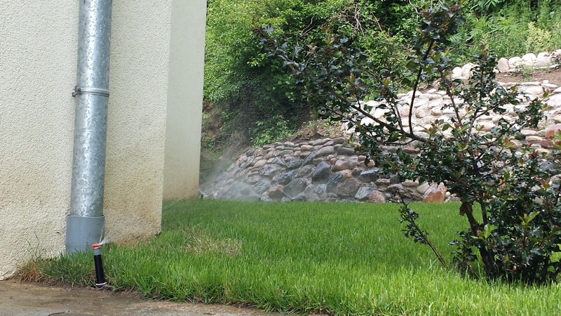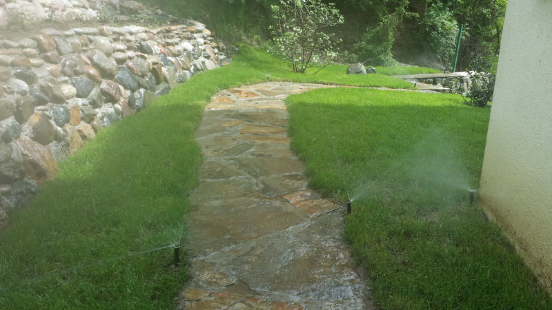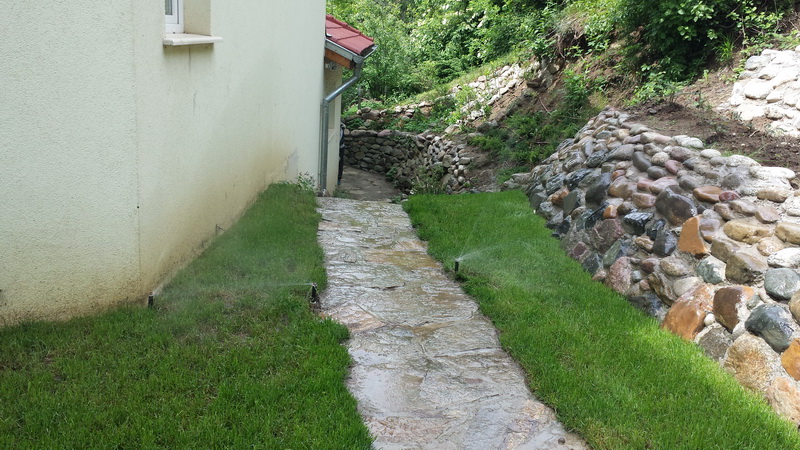 Поливна система в село Бистрица изградена с материали на Hunter Industries. Програматорът е “XC” с две станции. Единият кръг е с дефлекторни разпръсквачи с дюзи “MP Rotator”, с които се напояват тревните площи, а вторият е капково напояване за храстите.