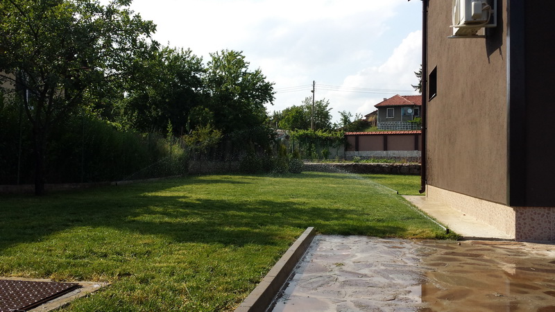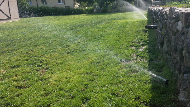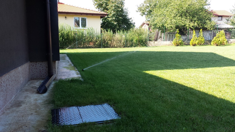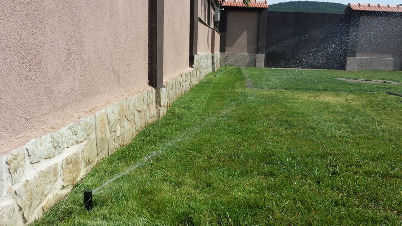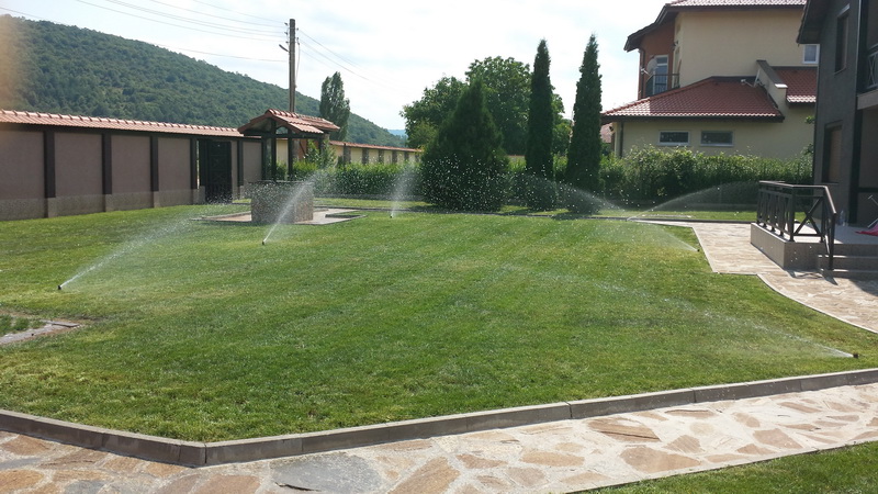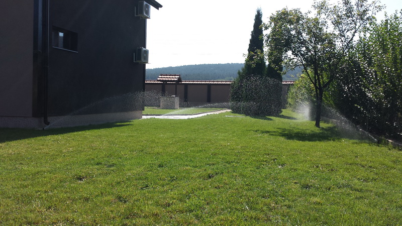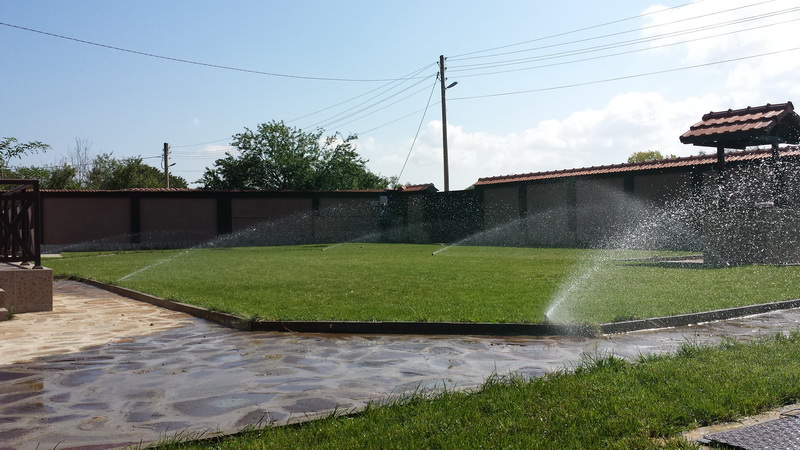 Поливната система е изградена с материалите на “Hunter Industries. Програматорът е X-Core с 6 станции. Системата се захранва от кладенец с потопяема помпа Grundfos. Използвана е комбинация от роторни разпръсквачи на Hunter и Rain Bird, съответно SRM и 3500. Електромагнитните клапани са PGV-100.