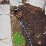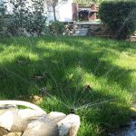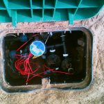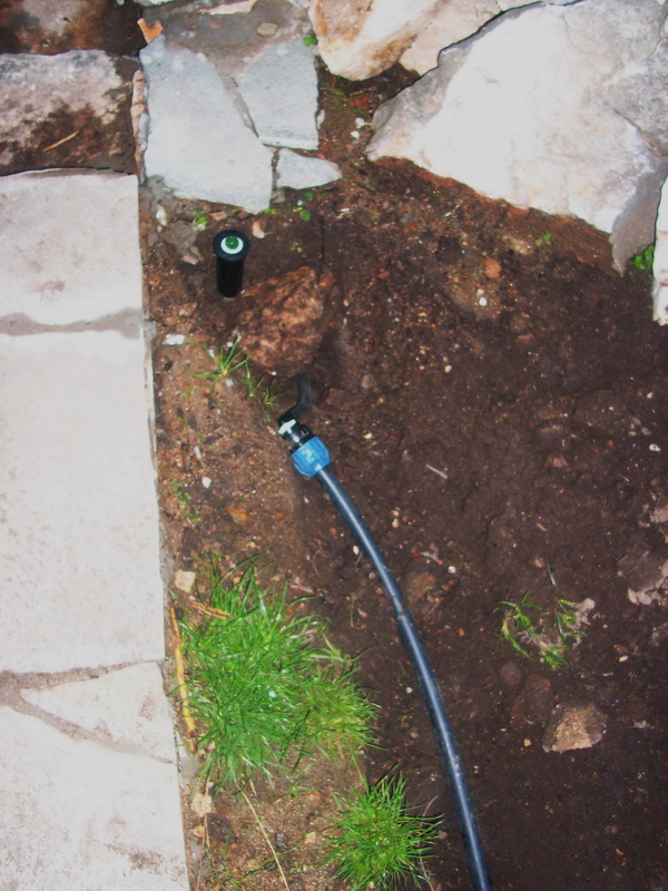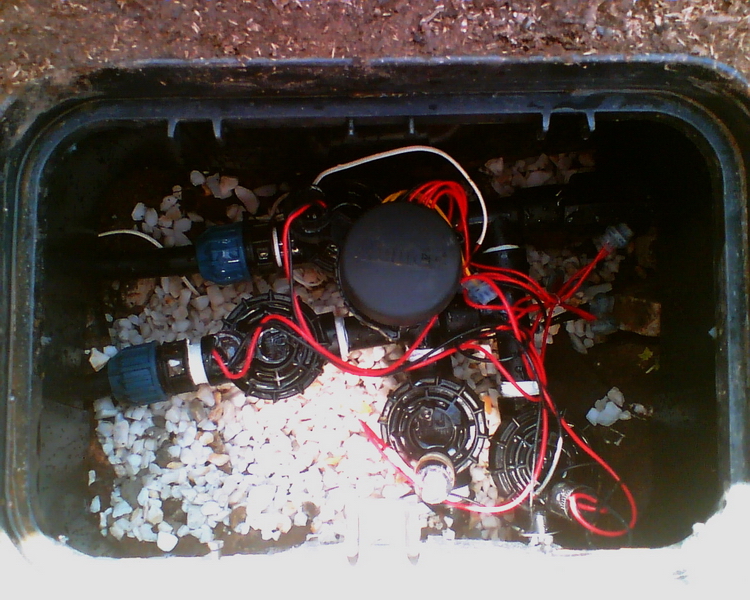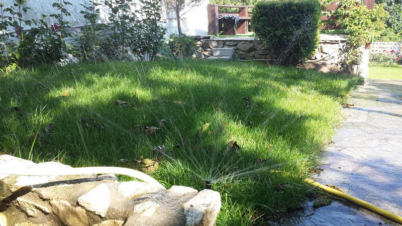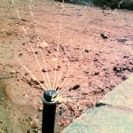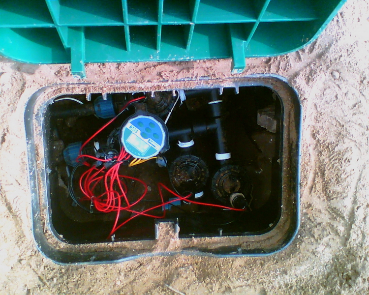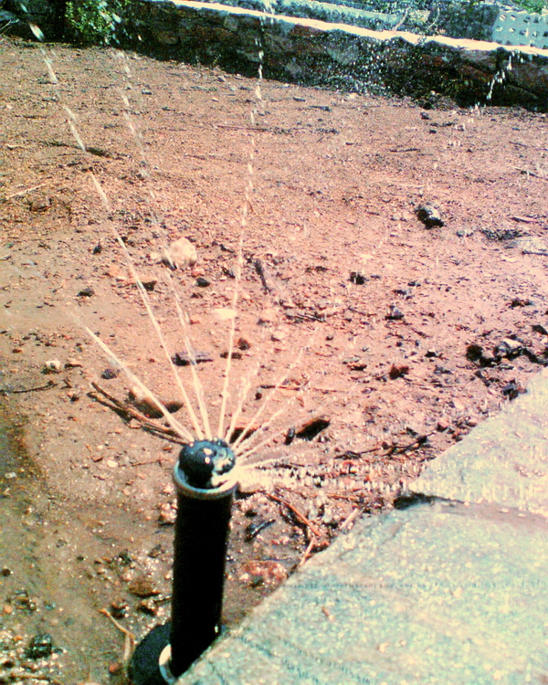 Вложените продуктите са на “HUNTER industries” – разпръсквачи и програматор SVC, захранван от батерия 9V. Системата е решена с четири поливни кръга. Разпръсквачите са дефлекторни – SRS с роторни дюзи “MP Rotator”