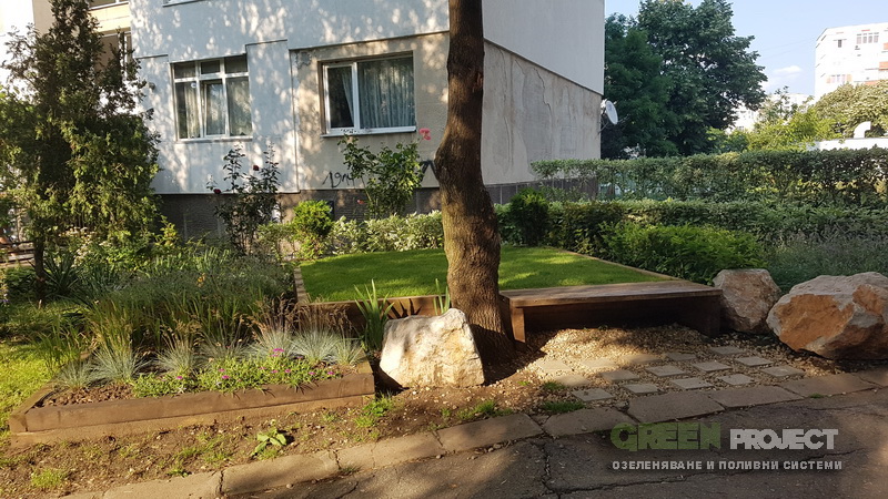 Озеленяване на пространство пред блок 722 в кв. Люлин 7. Една градинка озеленена с подръчни материали в свободното ни време, което правим по-скоро като хоби. И може би напук на негативизма и злобата от съседите, които ни съпътсваха през годините докато сме я изграждали и поддържали. Изградили сме и автоматизирана напоителна система.