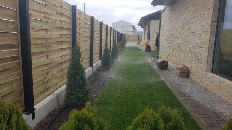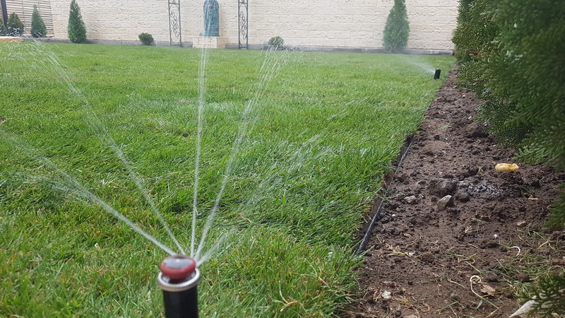 Системата се захранва чрез помпа от сондаж. Програматорът е X – Core на Hunter. Разпръсквачите са Pro spray със стандартна спрей дюза и комбинация от PGJ и Pro spray с роторна дюза MP Rotator.