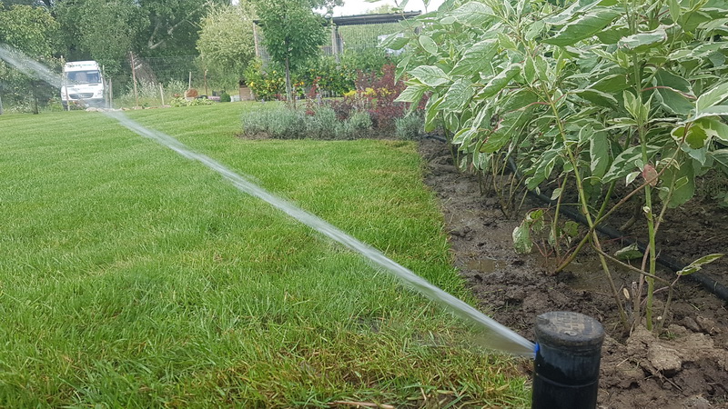 Изграждане на автоматизирана напоителна система в частен двор в с. Мрамор. Системата се захранва чрез хидрофорна помпа, която изпомпва вода от кладенец. Програматорът е X-Core на Hunter. Разпръсквачите са комбинация от роторни PGP и Pro spray с дюзи MP Rotator. Използвани са и роторни рзпръсквачи на Rain Bird модел 3500.