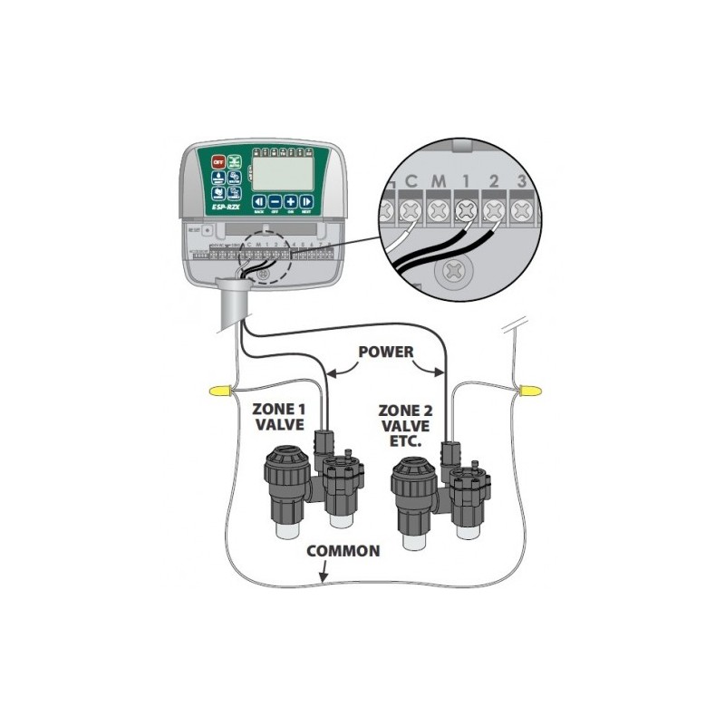 Програматорът ESP-RZX е разработен, като продукт лесен за употреба. Програмирането по станции позволява независима настройка на всеки клапан; не се налага обясняване на процеса на “програмиране” на крайните потребители, на практика елиминира обратните обаждания за неточности при програмиране. Големият LCD екранпоказва всички стъпки на програмиране за всяка зона по едно и също време. На базата на удобния графиченинтерфейс лесно се обясняват и представят възможностите на програматора.