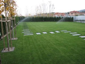 Автоматизирана поливна система с програматор IMAGE 4 на Rain Bird. Системата е решена с четири поливни кръга. Използвани са разпръсквачи Pro Spray с дюзи MP Rotator на Hunter. Захранването с вода е от водопровода.