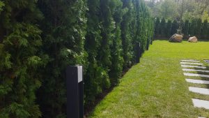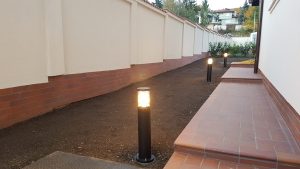 Градинско осветление разделено на два кръга. Има високи 60 см. пилони, както и прожектори за вграждане в земята покрай елеята и прожектори за осветяване на стените.