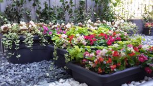 Озеленяване на тераси с лавровишни в кашпи. Целта е да се създаде естествена преграда от шума и праха, тъй като сградата се намира над много натоварен булевард. Монтирали сме и напоителна система с програматор с вграден клапан на Rain bird.