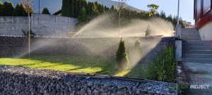 Захранването е със сондаж, в който е монтирана помпа Franklin electric. Напоителната система е с материали на Hunter Industries. Разпръсквачите са Pro spray и PGJ. Програматорът е с wi-fi, който чрез приложението Hydrawase, управлява напояването така, че саморегулирайки се спрямо температура, влажност, вятър и други, да спести до 50% от разходите за вода.